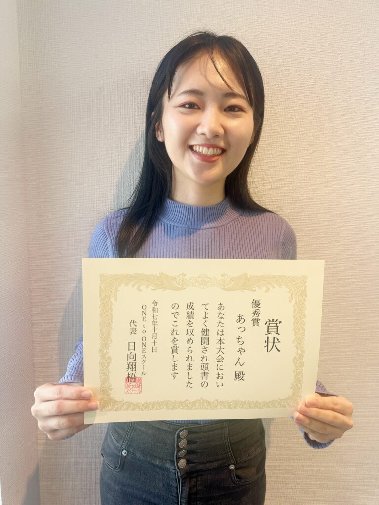 投票数が2番目に多かった生徒さんには、「優秀賞」として賞状をプレゼント!