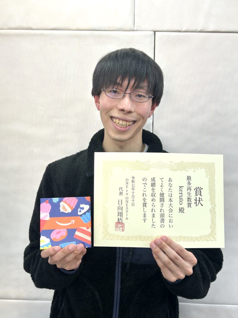 動画の再生数が一番多かった生徒さんに「最多再生数賞」としてAmazonギフト券¥5,000+賞状をプレゼント!